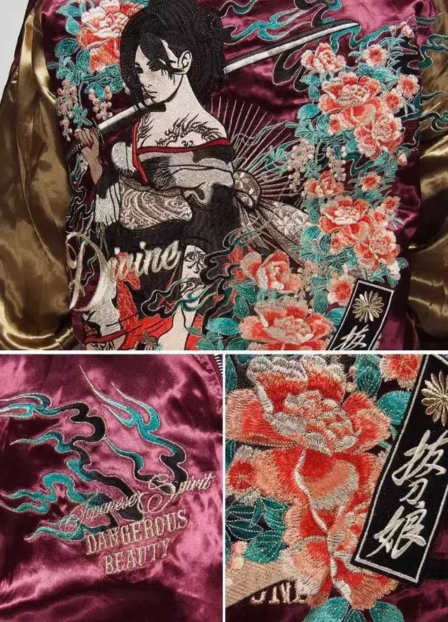 横须贺手信夹克上刺绣十分细腻,所以真正的横须贺手信夹克价格也并不便宜,刺绣的越精细面积越大,价格也就越昂贵。夹克上的刺绣画作中最著名的要属狩野派(かのうは),这是日本著名的一个宗族画派,日本的主要画家都来自于这个宗族,主要为将领和武士们服务。