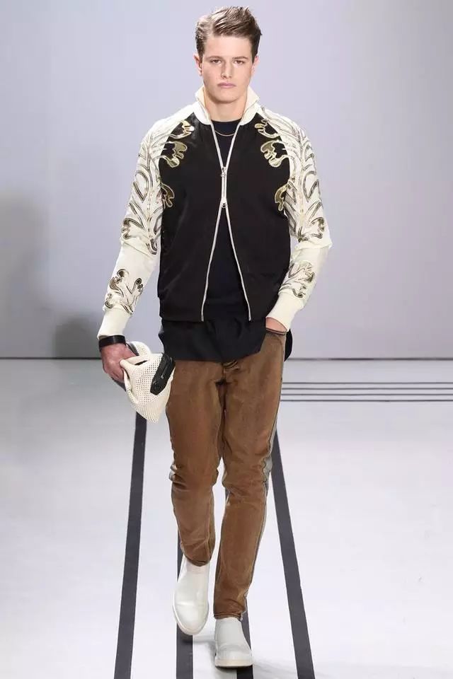 这身在巴黎男装周的LV走秀款,小编印象中最深刻也觉得最漂亮,当下最流行的丝绒夹克,还带刺绣的哦!脖子上那条窄丝巾,要不要打赌,若是寻常人穿戴上,那肯定是大写的——Sa(第三声)!