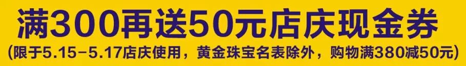 ❤你晒我送:消费(不包括饰品)后朋友圈晒单可获50元现金劵1张