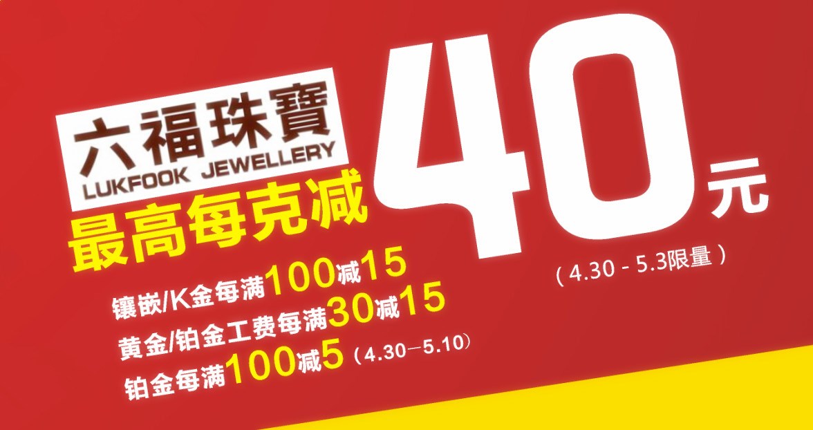 黄金每克最高减80元(4.30-5.3指定品牌限量)
