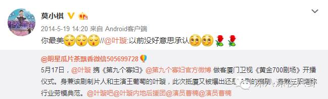 小主敢说被吐槽无数次改名的莫小棋是根本不会介意叶璇插刀滴,因为这就是她们相爱的方式。Wuli叶璇最爱说,人以群分。说莫小棋是她的铁闺蜜谁都得服气。