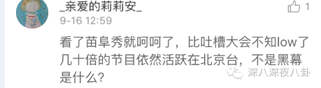 《苗阜秀》抄袭《吐槽大会》的模式,却没有思聪老公顶出来的才、财,趁着《吐槽大会》被禁就出来作妖。