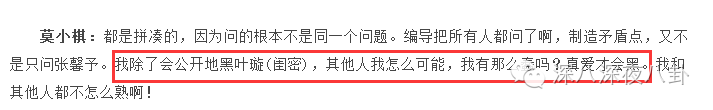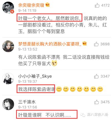 为了佐证自己讲的有理有据,叶璇还顺便攻击了陈紫函的人品,因为她演过抄袭者的戏,闭眼都能想到是于正。