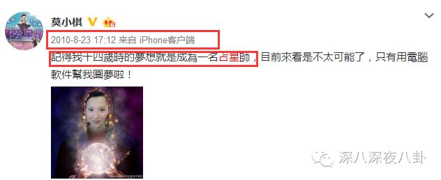 遥想2014年,莫小棋凭着从14岁就着力养成的占星技能举办了节目《星座棋谈》,现在看起来完全是娱乐圈预言书,