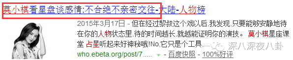 举头三尺有神灵,莫小棋还有一个隐藏身份,就是娱乐圈的大神婆,而且她成神已经两年啦。现在微博title都改成星座女神了。