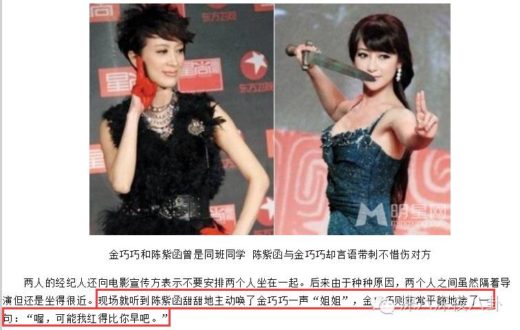 氮素经历类似未必出闺蜜,放眼演艺圈,同班女同学关系不好的比比皆是,当年上戏同班的陈紫函和金巧巧,就有一场经典的撕逼小短剧。