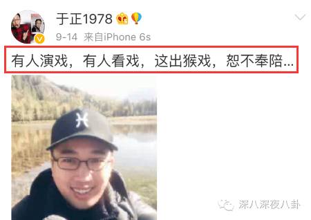 还是于正于妈妈一语道破天机,直称这一出炒作都算不上,就是一场猴戏,表示不想做猴子派来的逗逼。