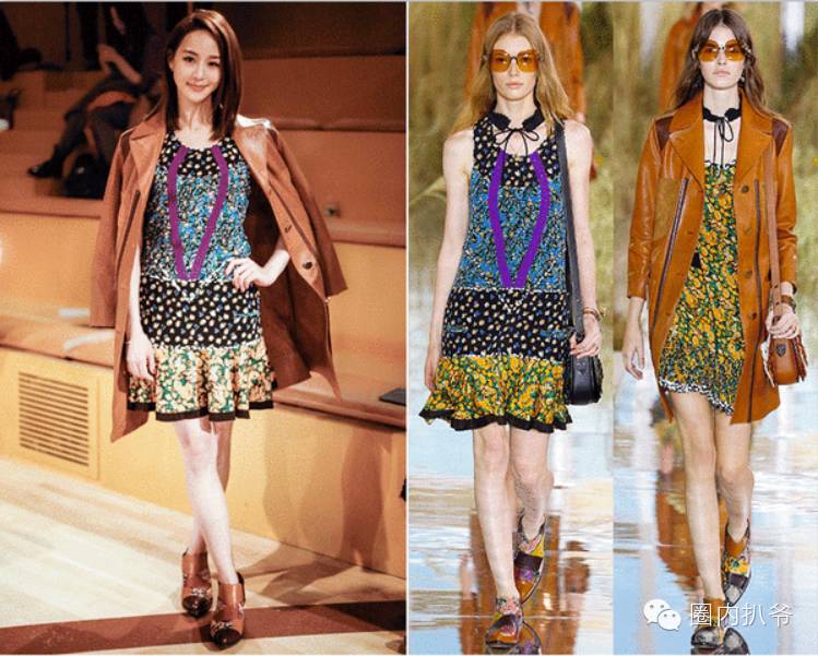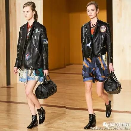 连衣裙是Coach 2016 春季的流行元素印花,而外套搭配拼接皮衣元素,英气之外不失甜美,小清新之余更多了一些英姿飒爽。
