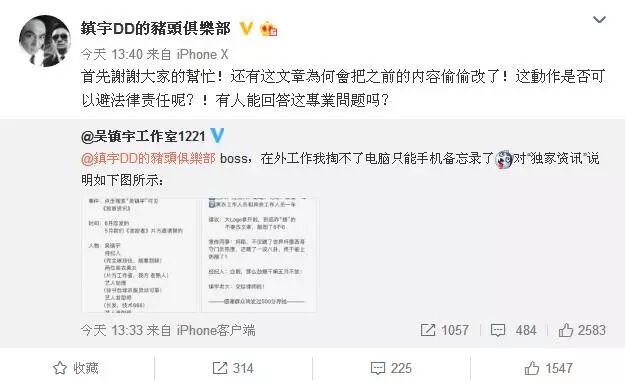 一个多小时候,转发量早已远远超过500,工作室用手机备忘录做出了详细回应……