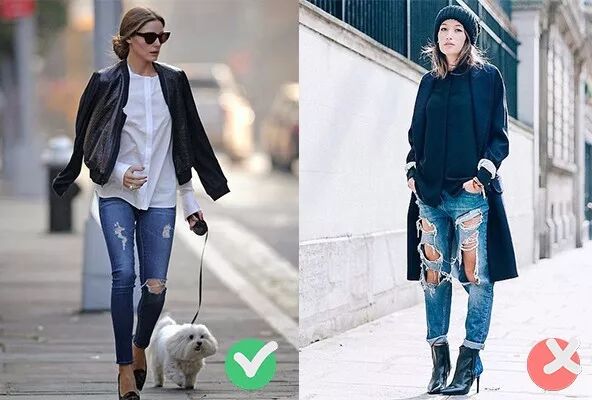 另外,喜欢穿破洞牛仔裤的仙女要注意,破洞不是越多越好,适量的开一两个就足够了,破洞太多容易显邋遢。