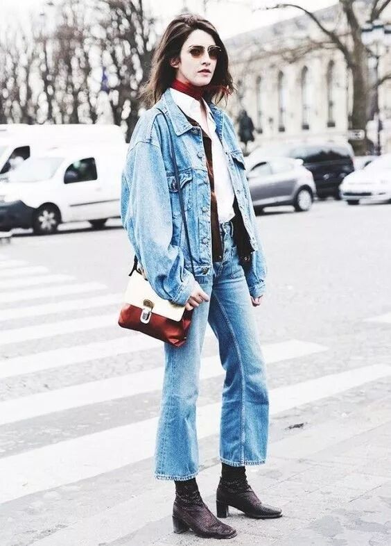 喜欢休闲街头风的仙女不妨选择九分长的微喇裤,一身牛仔,girl crush魅力男女通杀!用一点红色点亮,看起来复古又时髦!