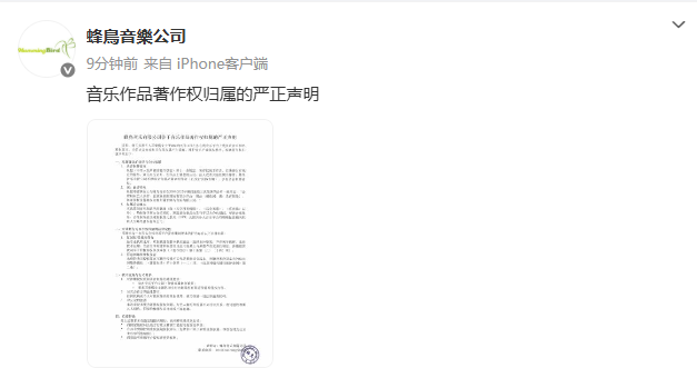 18日,邓紫棋前公司蜂鸟音乐发布声明,称邓紫棋重制歌曲侵权,要求平台下架邓紫棋重制版音乐,邓紫棋方删除侵权内容。