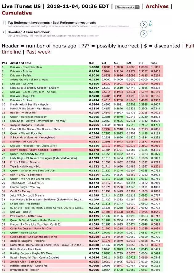 然而就在11月4日,A妹Ariana Grande发行新歌,然而北美榜单的榜首却始终被吴亦凡( Kris Wu)的新歌霸占。