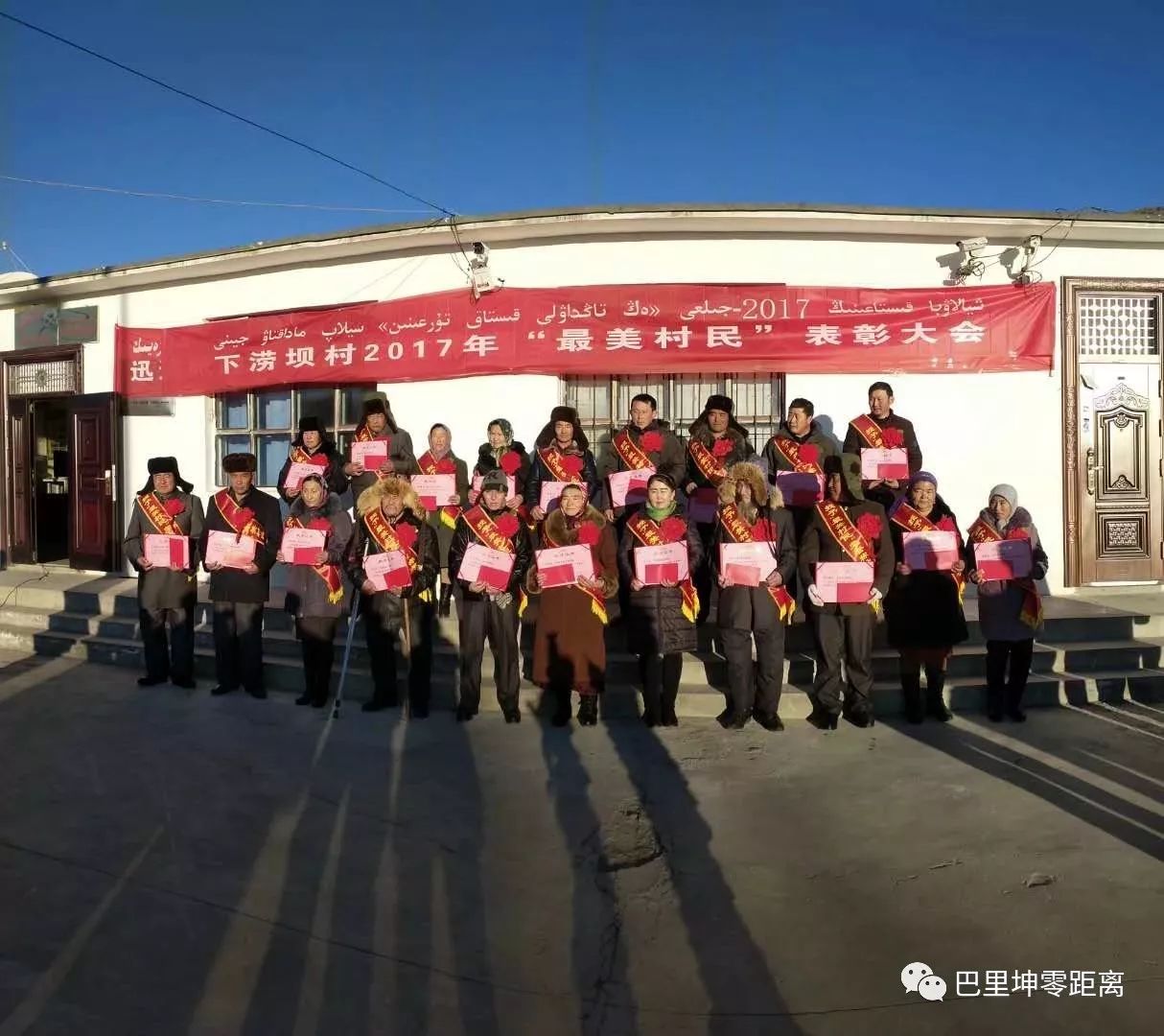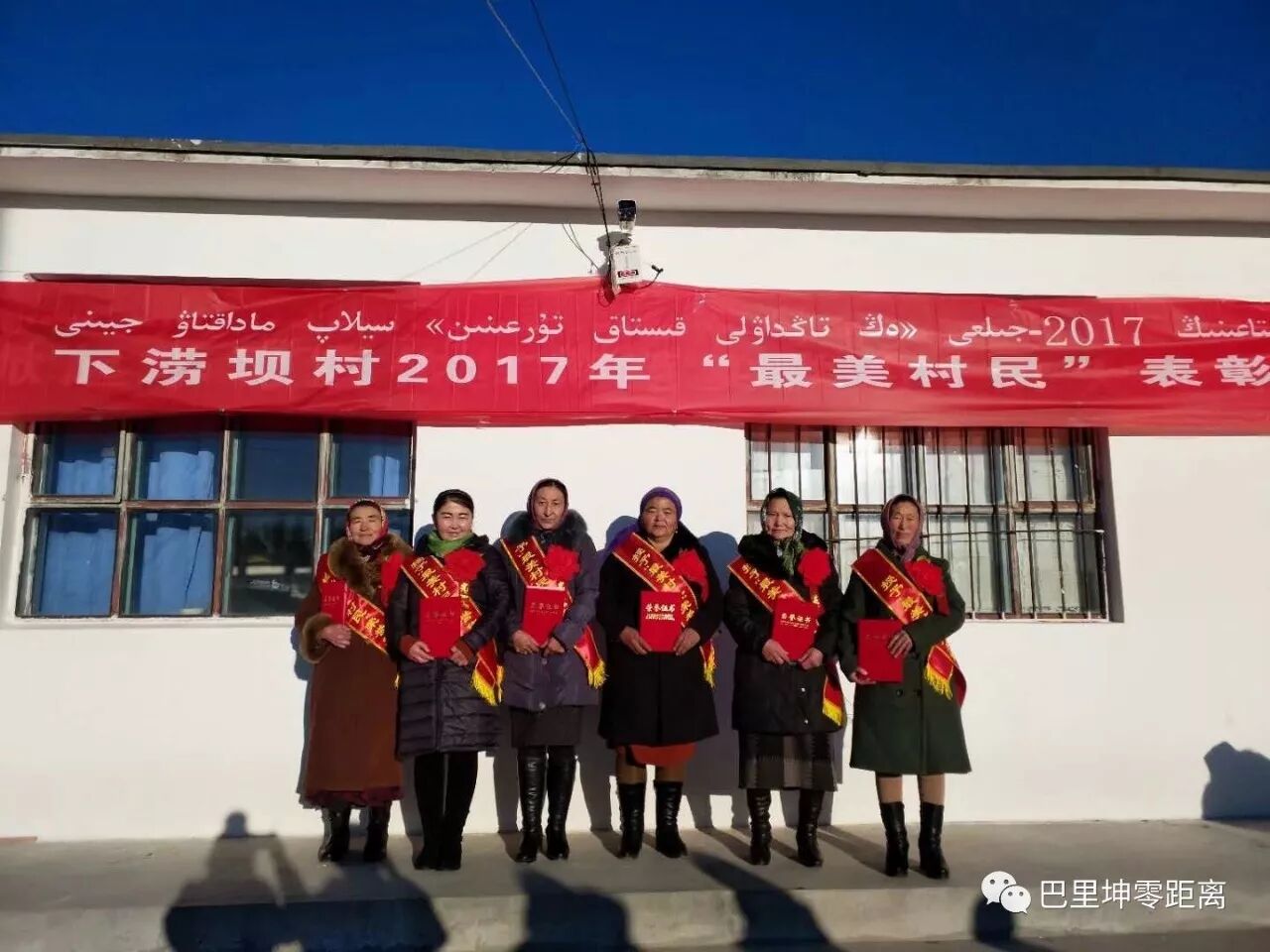 12月4日,2017年度下涝坝村“最美村民”评选表彰在庄严的升国旗仪式上举行,村委会、“访惠聚”工作队对全村评选出的20户“最美村民”进行了表彰。