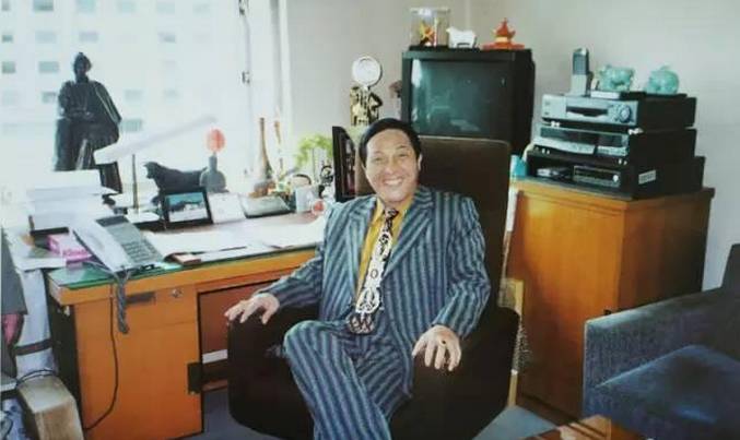 看似平常的背景实为某日本前首相办公室。画册中原图说为“大师坐在首相太师椅上体验片刻首相滋味。”