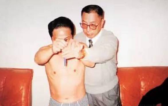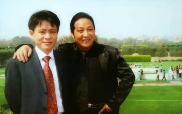 但这张照片证明,搂肩膀只是礼仪性合影动作。原图说:大师的徒弟邹勇先生与大师在印度新德里合影留念。
