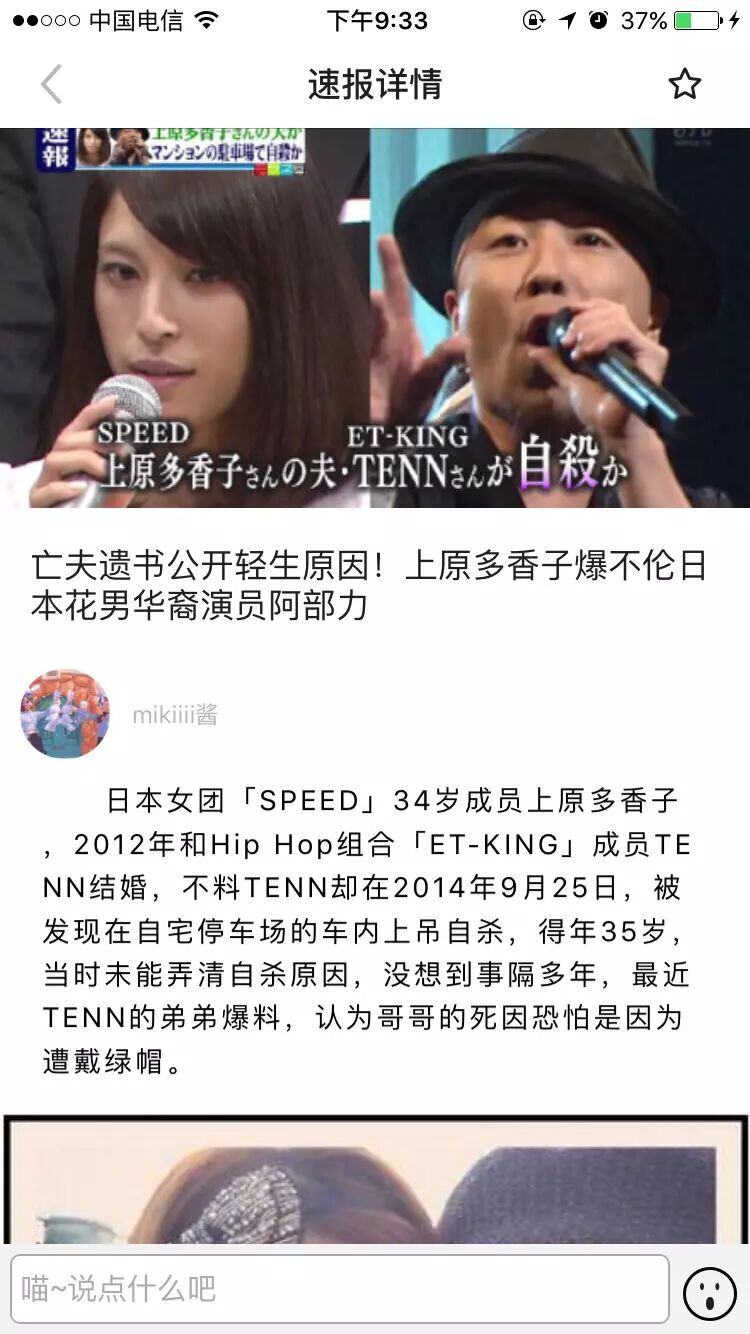 据台湾媒体报道,日本女团SPEED成员之一的上原多香子曝出和已婚男星阿部力曾不伦的丑闻,被男方家人指控是害丈夫轻生主因。