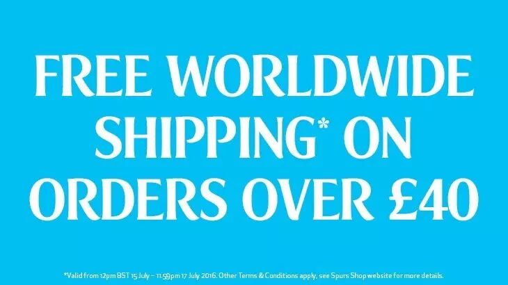 热刺球迷福利来临!从今天晚上19点开始,直至本周日19点之前,只要在热刺官方商城购买超过40镑的商品,即可享受免邮活动!免邮!免邮!
