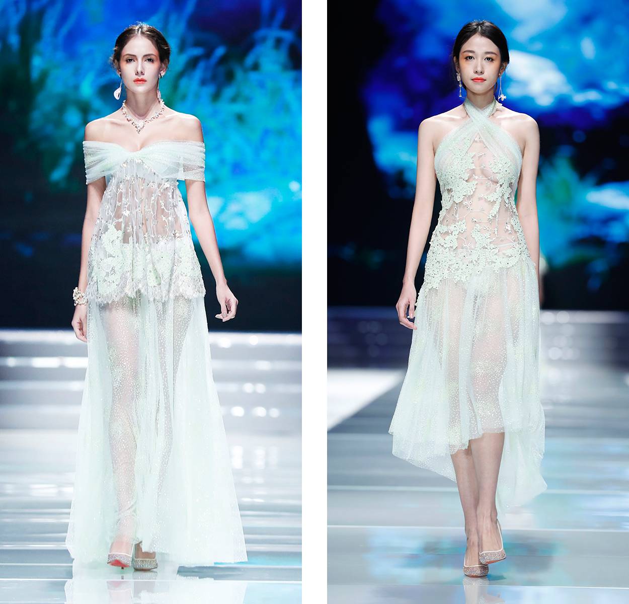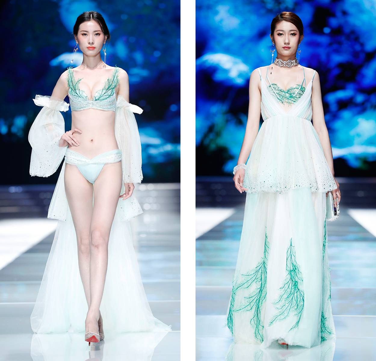 第一个系列主题是睡美人,每位模特都像从镜框中走出的精灵,不知道的还以为在看礼服秀。