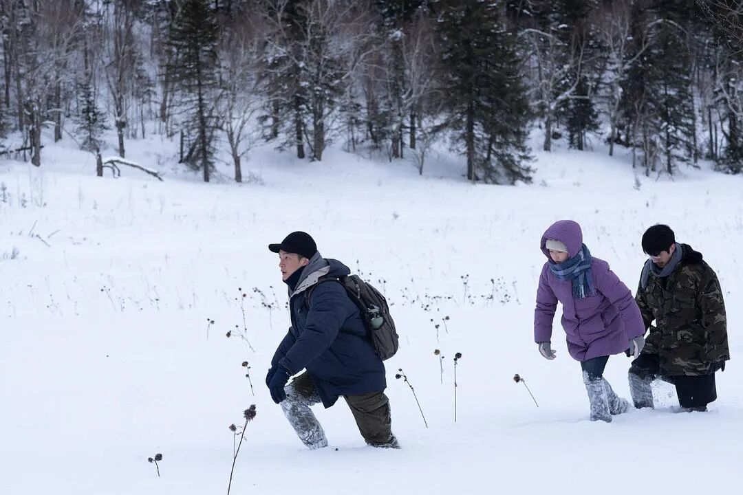 周冬雨在《燃冬》中继续贡献了影后级的表演,尤其是三段精准的哭戏让人印象深刻。当《苏珊的舞鞋》唱到“夜晚好美,真的让我想流泪”时,一颗泪珠适时的落下;三人在长白山有一场遇到熊的“神迹”式的戏,当熊亲吻娜娜的脚踝时,周冬雨再次落泪,精准传递出了角色与长白山传说之间的互文关系。