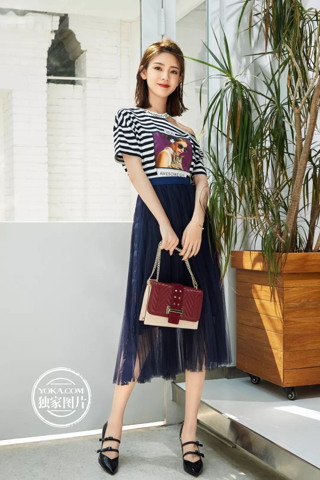 条纹衫一直以来都是经典百搭的,陈瑶的这一边露肩设计展现一波锁骨杀,撩人指数100分,穿上深色薄纱百褶裙,演绎夏日都市阳光女孩。