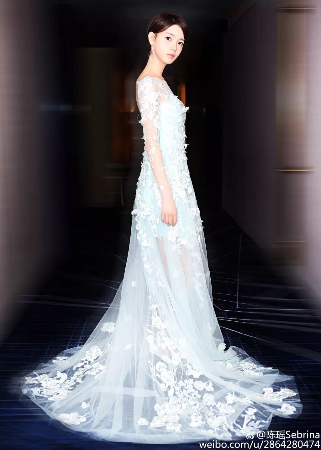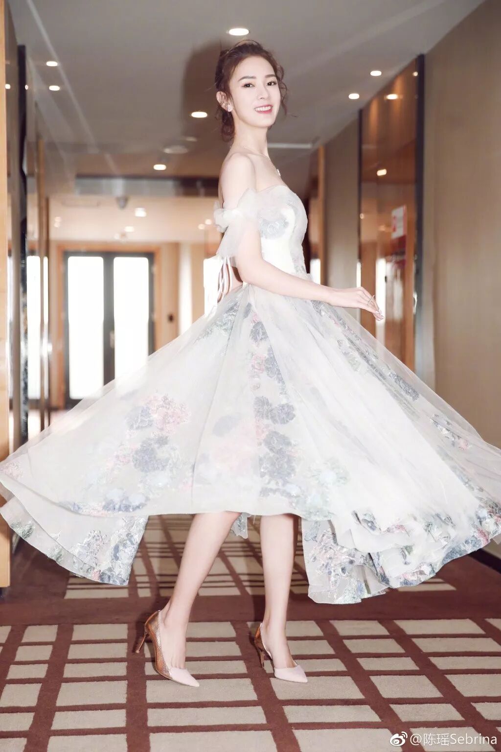 没错,我们的瑶妹就是一枚小仙女,身穿薄纱礼服裙的她就像一位仙女,干练清爽的发型,优雅极了,超级有气质有没有!美得发光。