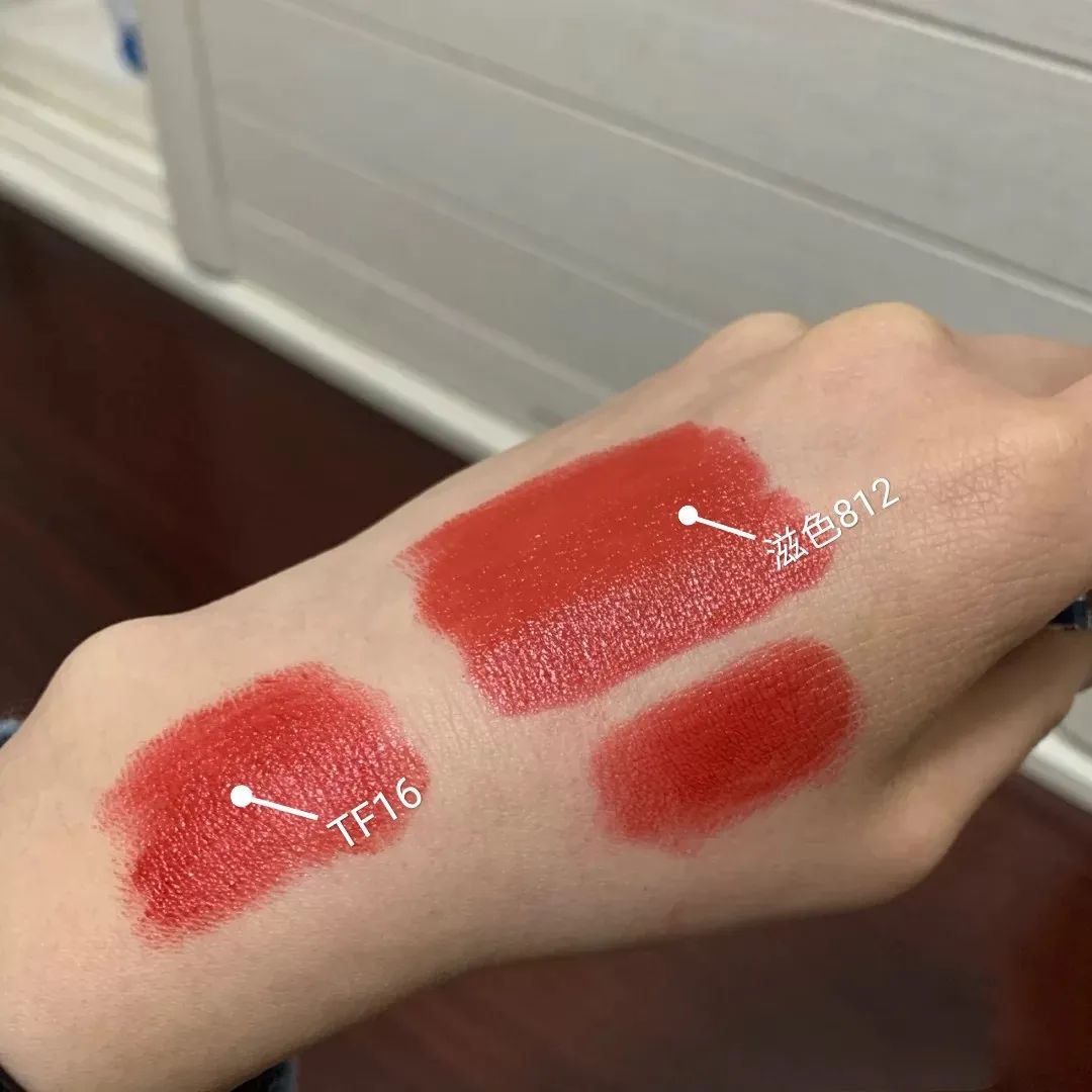 都是番茄红,TF#16红调比较重,而滋色#812橘调会多一些,不仔细对比没有太大的区别。