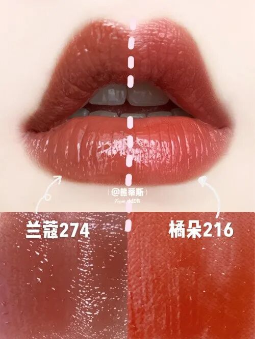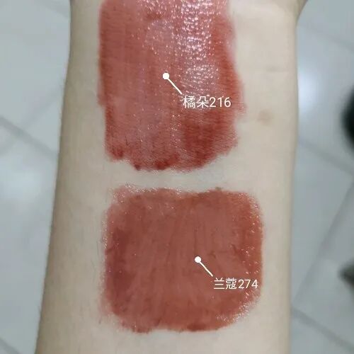 上嘴其实能看出差别,兰蔻#274更挑人,深唇黄皮姐妹可能涂出来的感觉会不同,而橘朵#216更加显气色。