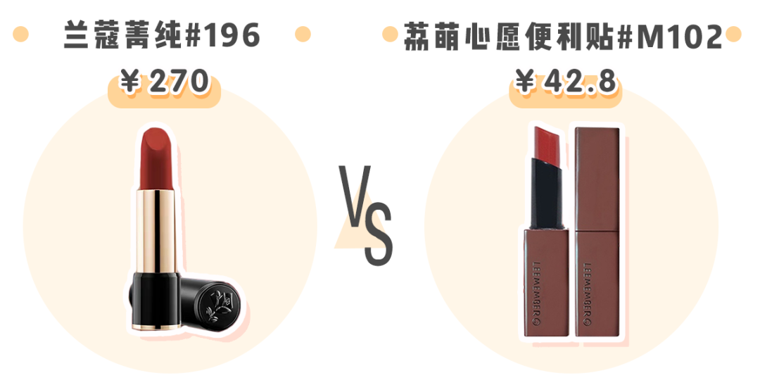 相对来说荔萌102这支滋润度会高一些,涂起来也比兰蔻的顺滑一些(但也就一丢丢差别),不打底直接上嘴会觉得有点干,但后续不会拔干。