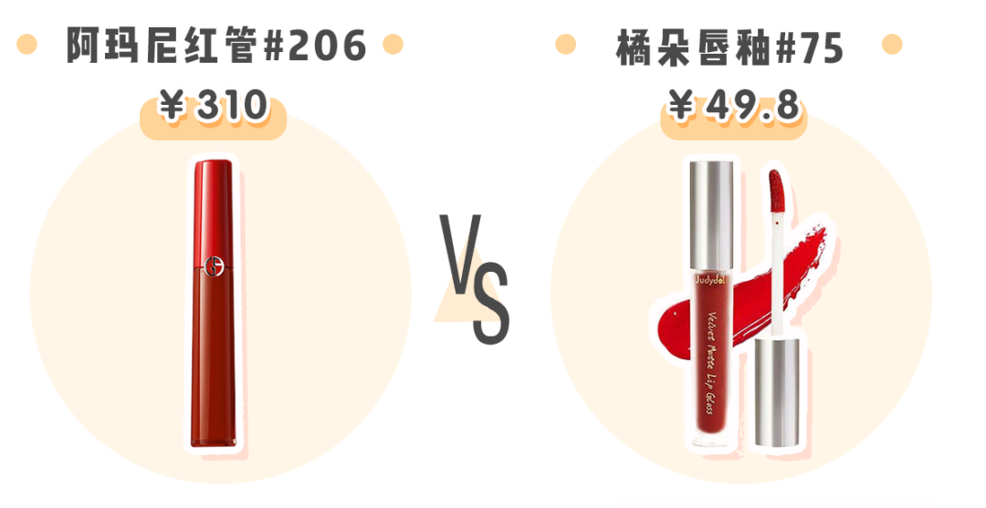 第二组是俺今年很爱的阿玛尼新色206 VS 橘朵75。很浓郁的栗子红棕色,完全是秋冬必备色,高级有质感。