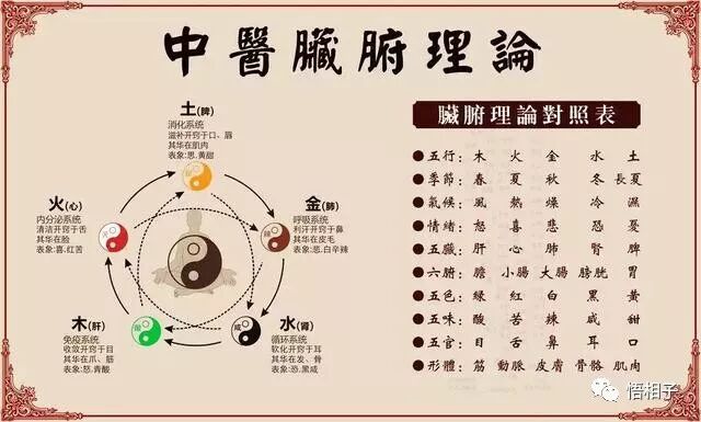 北方生寒,寒生水,水生咸,咸生肾,肾生骨髓,髓生肝(水生木也)。肾主耳,其在天为寒,在地为水,在体为骨,在脏为肾,在色为黑,在音为羽,在声为呻,在变动为栗(寒则战栗,恐则战栗,肾水之象也),在窍为耳,在味为咸,在志为恐。恐伤肾(恐则足不能行,恐则遗尿,恐则阳痿,是其伤也),思胜恐。(土制水也),寒伤血(《阴阳应象大论》云∶寒伤形,血为有形,形即血也),燥胜寒(燥则水涸,故胜寒。若五行之常,宜土湿胜水寒,然湿与寒同类,不能制也),咸伤血,甘胜咸(土胜水也。《新校正》云∶在东方曰风伤筋,酸伤筋;中央曰湿伤肉,甘伤肉,是自伤也,南方曰热伤气,苦伤气,北方曰寒伤血,咸伤血,是伤我所胜也;西方云热伤皮毛,是所不胜伤己也,辛伤皮毛。是自伤也。五方所伤,有此三例不同)。