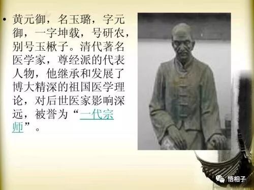 黄元御,名玉璐,字元御,一字坤载,号研农,别号玉楸子。清代著名医学家;尊经派的代表人物;乾隆皇帝的御医,乾隆皇帝亲书"妙悟岐黄"褒奖其学识,亲书"仁道药济"概况其一生。他继承和发展了博大精深的祖国医学理论,对后世医家影响深远,被誉为"黄药师"、"一代宗师",清军四川军医馆--久真堂的祖师爷。黄元御不但深于医学,道学、经学造诣亦相当深厚。乾隆二十一年(1757)二月,他在从事医著之余还应友人澹明居士之请写了《道德经解》一书,诠释其哲理,发挥其奥义。1757年六月又在精研易理十余年的基础上完成《周易悬象》一书,阐发阴阳八卦爻辞变化之理。四库馆臣评其《周易悬象》谓"近人说《易》中,独可谓学有根据。"给予了很高的评价。