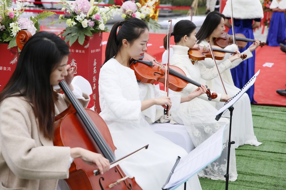 上午9点,营销中心大提琴声音悠扬,人头攒动,盛况空前,到访来宾络绎不绝,签到区一片热闹盛景。