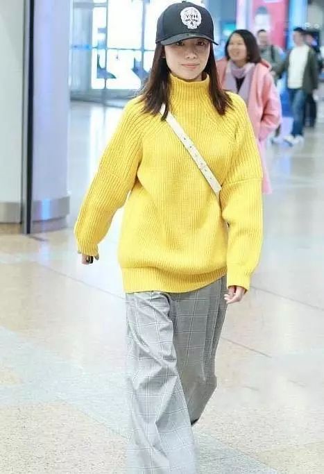 在此之前,有这种搭配,亮色的龟脖子,这也是超大的款式,但是这一次,董洁与流行的宽腿裤搭配。虽然它们都是受欢迎的商品,但这两种超大款式使得160的董洁成为了五五分。