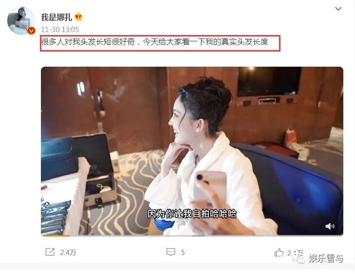 GuLiNa 11月30日在个人社交帐户在动态更新,晒的时间长度的1分32秒的视频,并说“很多人都好奇我的头发长度,今天每个人都能看到我的头发长度”,从GuLiNa孙先生视频标题可以看出她是一个非常喜欢她的粉丝的女明星。