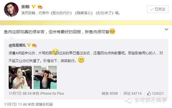 还有微博博主称:“张翰冷战归冷战,不过塘主短时间内肯定不会和古力娜扎提分手的,无论塘主在古力娜扎激吻照被曝光后面子上有多难看,都肯定是先力挺,表示不计过往,以显大度。 然后过一段时间以其他理由分手。记住,这是娱乐圈的套路!而且塘主绝壁直男癌! 反正这段感情,肯定无法善终。不信咱走着瞧!”(这唱衰的节奏。。。)