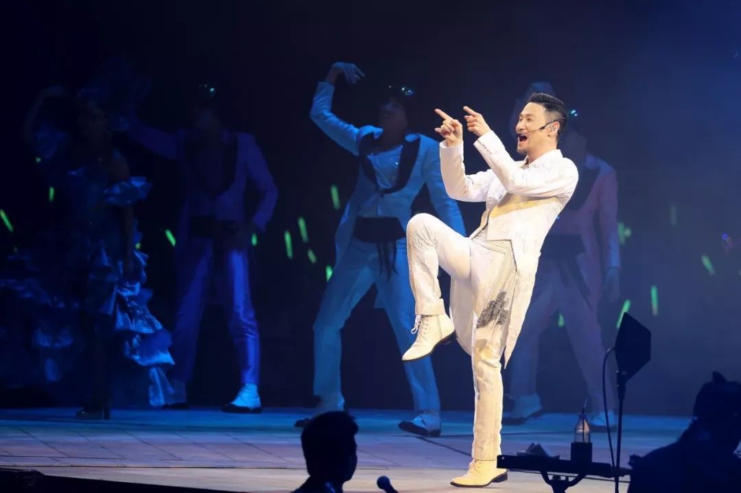 台上的张学友不仅落力唱歌,还卖力跳舞。