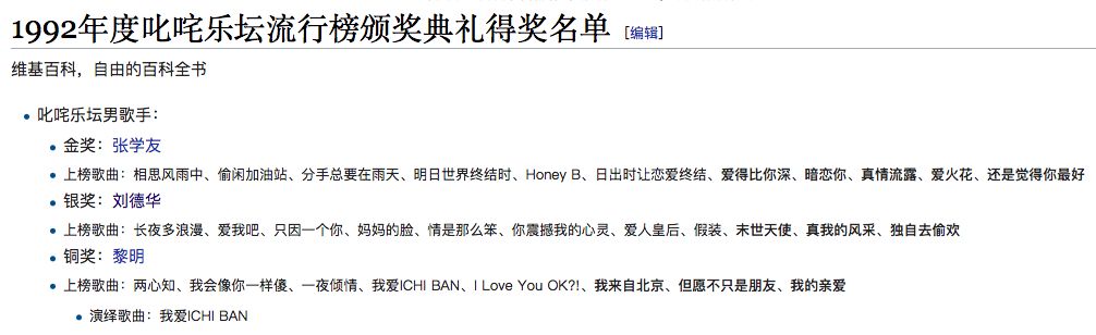 怎样理解这张92年的成绩单呢?咱们来随意感受一下当年叱咤乐坛流行颁奖礼的“叱咤男歌手”获奖名单。
