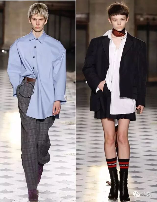 Balenciaga 和 Vetements 2016秋冬秀场也发布了这一趋势哦,露出的衬衫越长越时髦 。