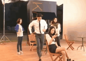 在片场,助理想帮他整理下衣角,刚一碰到他,他就以迅雷不及掩耳之势,哐当,往地上一摔。