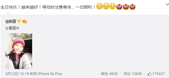 3月12日是赵薇40岁的生日,一大早就看到wuli赵薇的自拍照