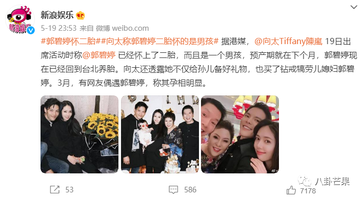 一胎一岁时,郭碧婷就怀上了二胎。向太又是第一官宣人,还开心宣布二胎是男娃。一胎的时候没提性别。