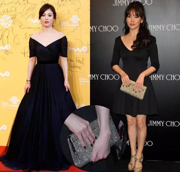 宋慧乔可是微胖型女神的,当然要穿黑色来显瘦了,无论是长裙还是及膝连衣裙都要穿V领型,因为显脸小呢!