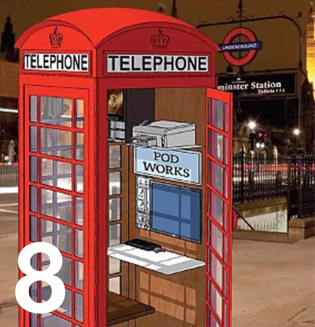 继咖啡屋、手机充电站、迷你图书馆、紧急医疗站之后,一直走在转型路上的红色电话亭现在又要变成办公室了。来自纽约的初创公司 Bar Works 最近打算将其改造为共享办公室,为出差的人们“在会议及面试之前提供一个便利的场所”。该迷你办公室将会配备 Wi-Fi、电源插座、打印机、扫描仪,还会提供免费咖啡和茶水,并将于8周之后投入使用。