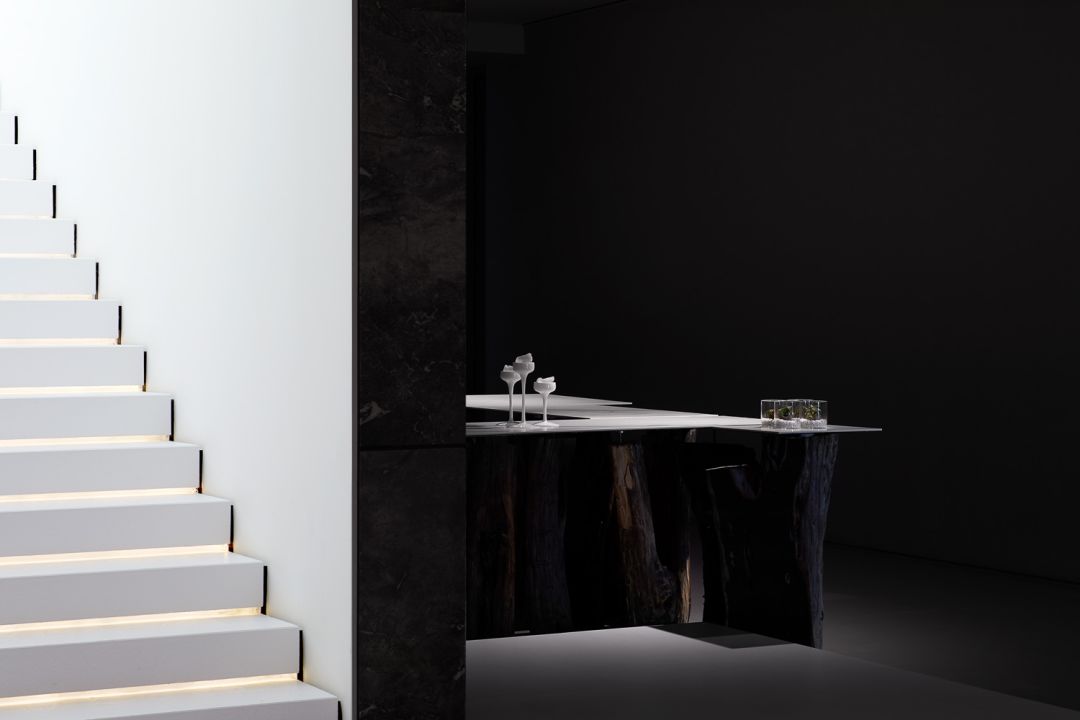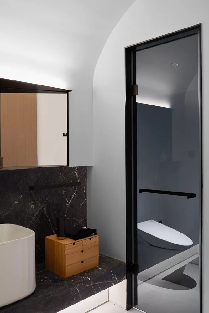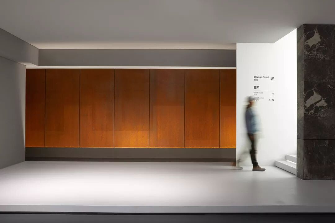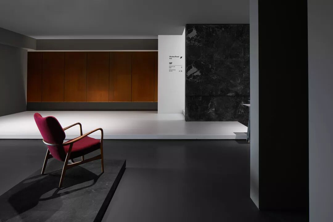 抛开不必要的修饰,整个大厅从地面、墙面到天花全部涂刷成灰色,形成一种浑然天成的状态,让空间回归到物质本该有的样子,诠释出了传统写意画中水元素的虚无感。