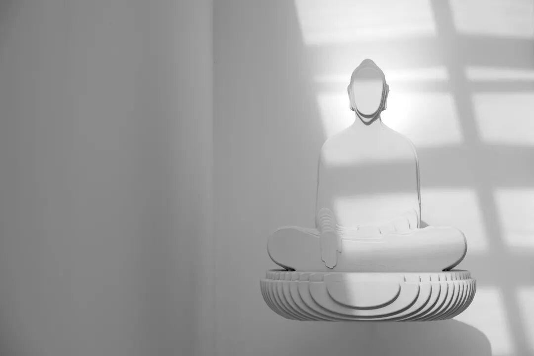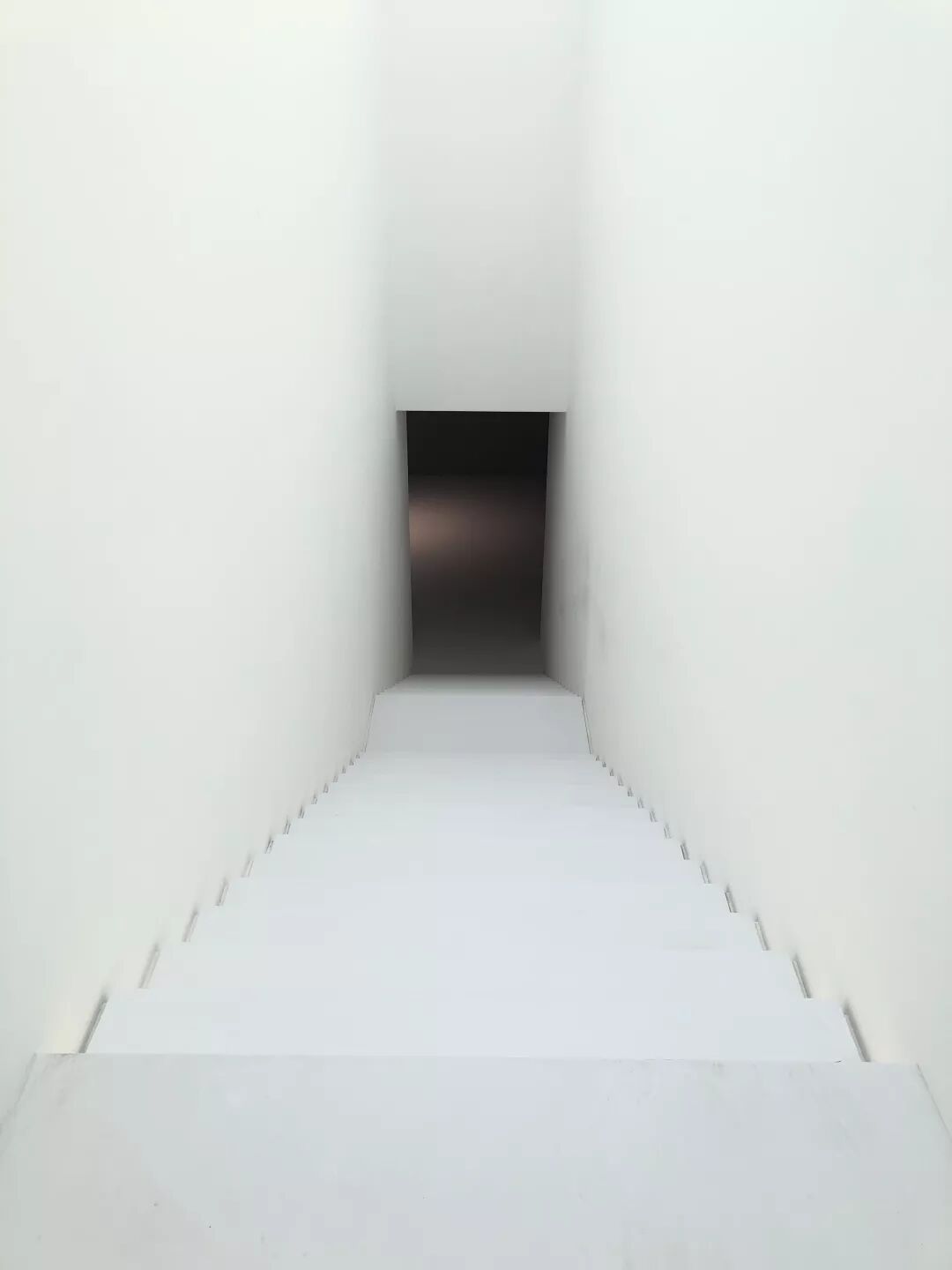 一条狭长而纯白的天梯通往光明的长廊,一尊悬浮的佛像,随着四季变换、太阳东升西落,而形成不同的光影魔术,虽是纯白,但不单调。