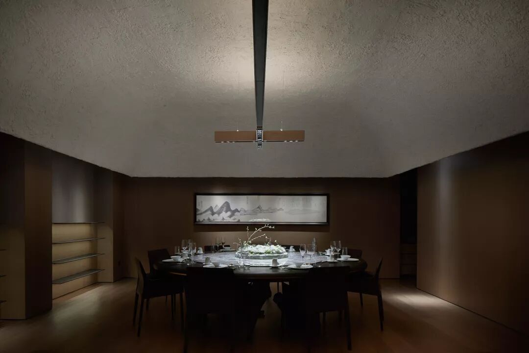 天然的石材、木质格栏的光影、平静如水的地面、锈迹斑斑的金属板、闪电和燧石的火光、泰然自若的佛像......看似不经意,却巧妙地运用道家五行智慧兼鸿儒禅宗之道,完美地融入到空间的明暗虚实关系当中。