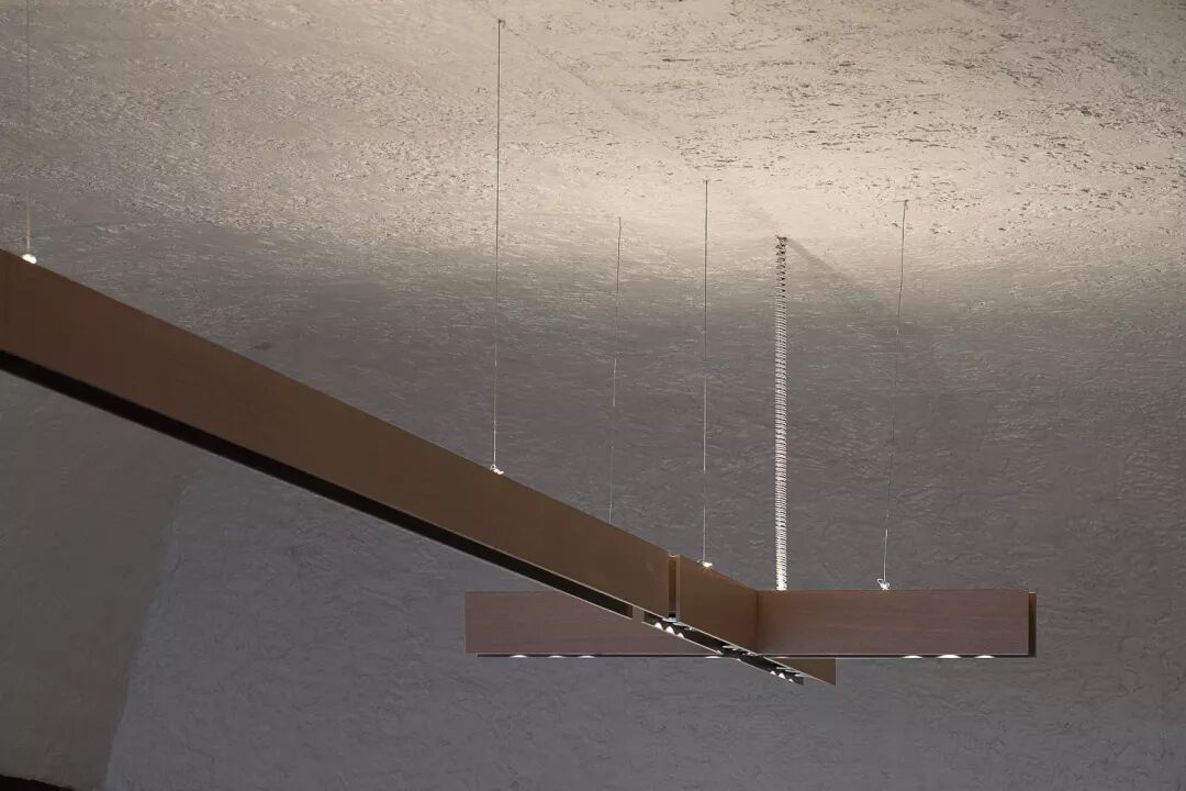所有可见的都是天然造物。会所的穹顶中央,一盏定制吊灯运用了“加、减”符号的形态,倡导了一种极简的建筑风格,融入简约、现代、低碳的理念将室内设计简单、纯净化,满足人们对现代生活环境的需求。