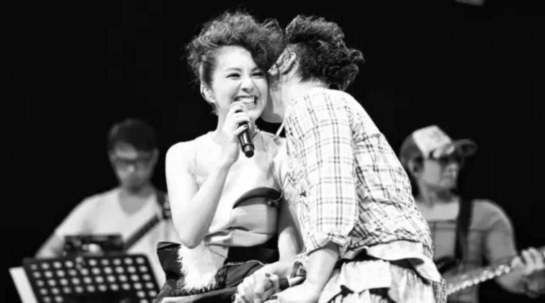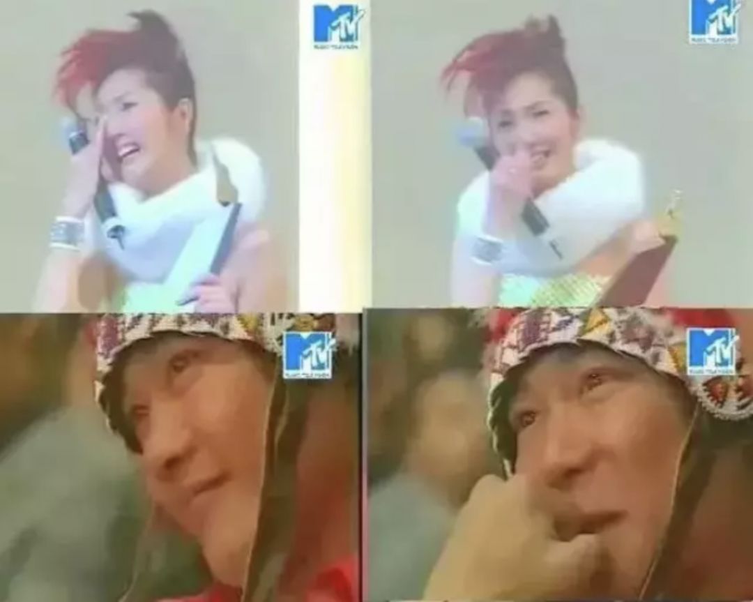舞台上的她哭得上气不接下气,却倔强地不肯放下手中的话筒,哽咽地坚持唱着。