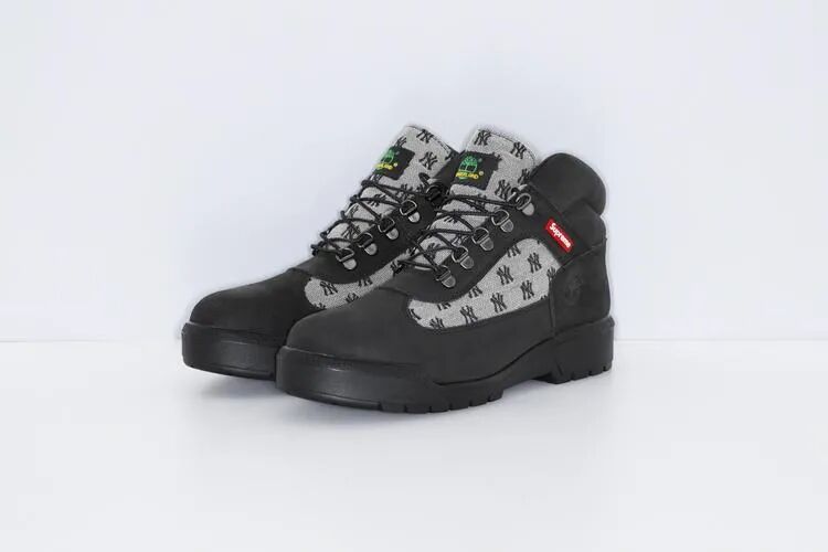 Supreme 携手 MLB 和 Timberland 共同打造联乘靴款系列,选用 Timberland 人气靴型 Field Boot 为基础,搭配鞋面两侧与鞋舌位置的 New York Yankees 徽标,并提供三种配色以供选择。
